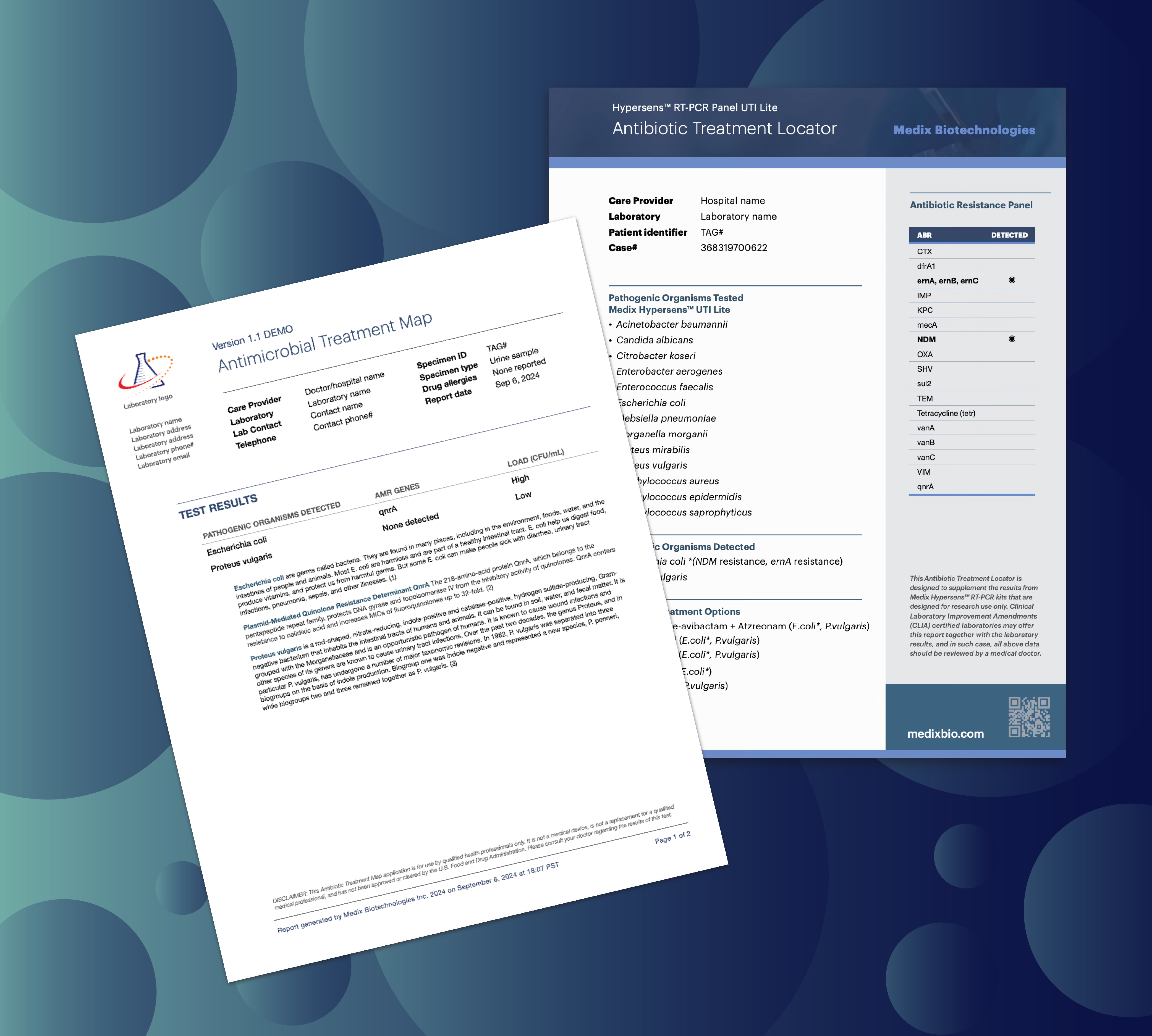 TreatOnce™ clinical decision support software complements Ultrasens™ molecular assays by mapping targeted antibiotic treatment options based on the detected pathogens and antimicrobial resistance genes. Recommendations can be printed in a clear, printable report.